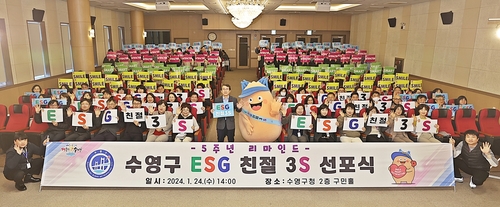 부산광역시 수영구는 지난 24일 '친절 3S 운동' 5주년을 맞이해, '5주년 리마인드「ESG 친절 3S」 선포식'을 가졌다고 밝혔다.