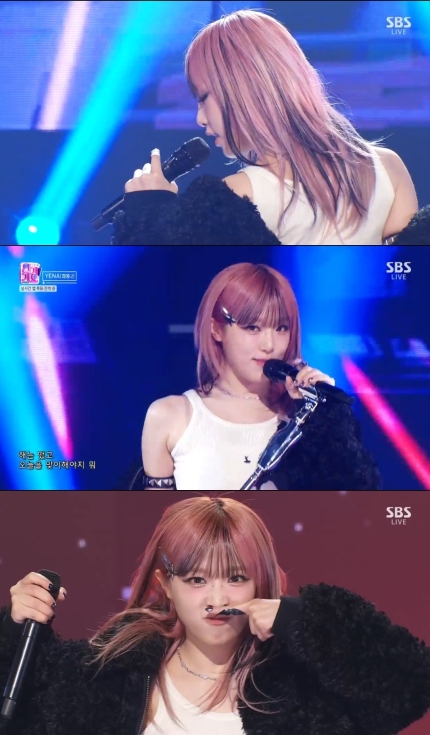 이날 최예나는 핑크 컬러의 헤어 스타일과 힙한 매력이 느껴지는 스타일링으로 무대에 등장했다. 상큼 발랄한 비주얼에 무대를 장악하는 카리스마까지, 완성도 높은 무대로 눈도장을 찍었다.
