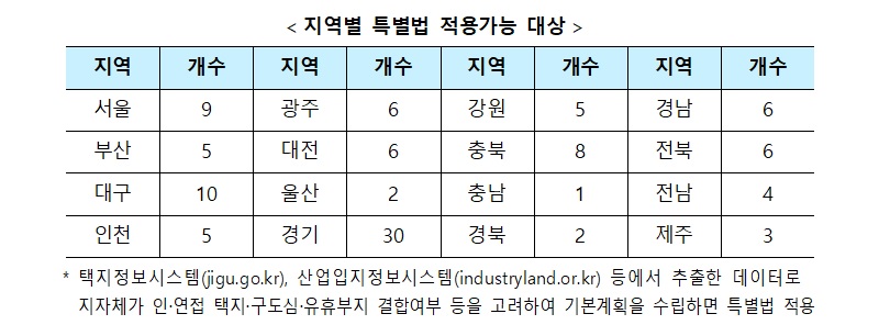 이에 따라 안산 반월, 창원 국가산단 배후도시 등이 추가돼 108개 내외의 지역이 특별법 적용을 받을 수 있게 됐다. 특별법 입안 당시에는 51곳, 103만 가구 수준이었다.