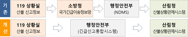 그동안에는 112·119를 통해 산불 신고가 접수되면 소방청 국가긴급이송정보망과 행안부 국가재난관리정보시스템(NDMS)을 거쳐야 했다.