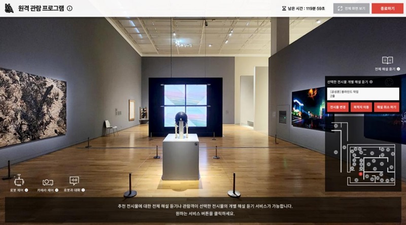 국립현대미술관에서는 산간과 도서 지역에서도 ‘큐아이’를 통해 전시 작품을 만나 볼 수 있도록 원격 접속 서비스를 시범 운영한다.