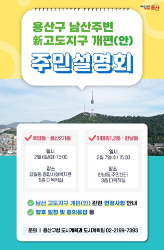 서울 용산구는 이달 6일과 7일 양일에 걸쳐 권역별로 '신(新) 고도지구 개편(안) 주민설명회'를 개최한다.