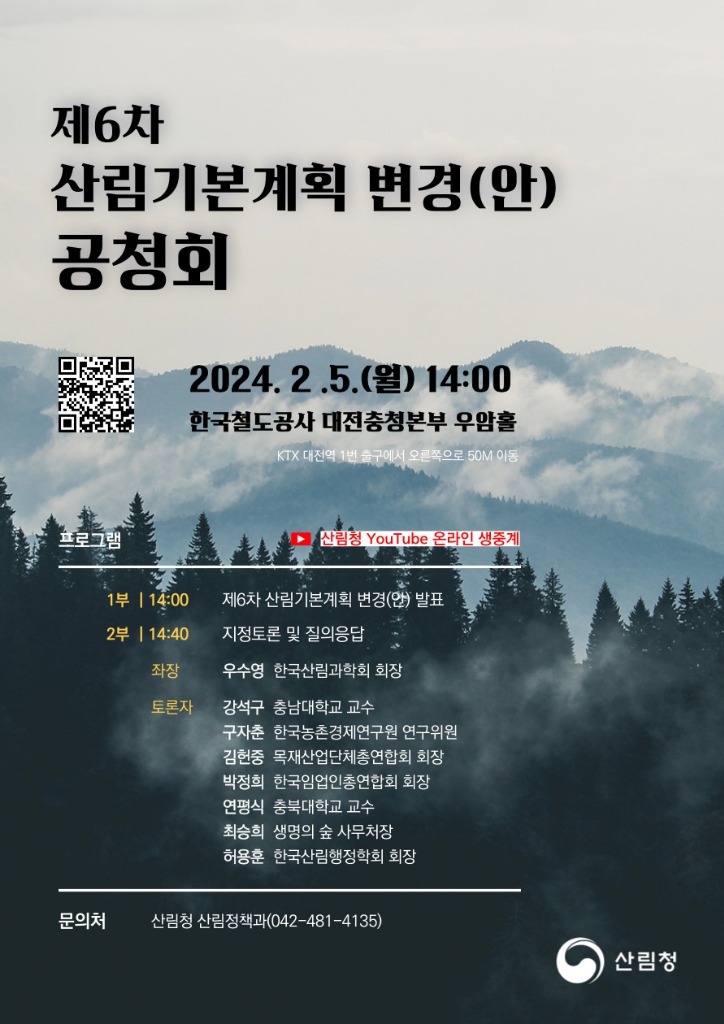이번 공청회는 국민 누구나 참여할 수 있도록 산림청 유튜브 채널을 통한 생중계와 함께 전자 공청회*를 진행한다.