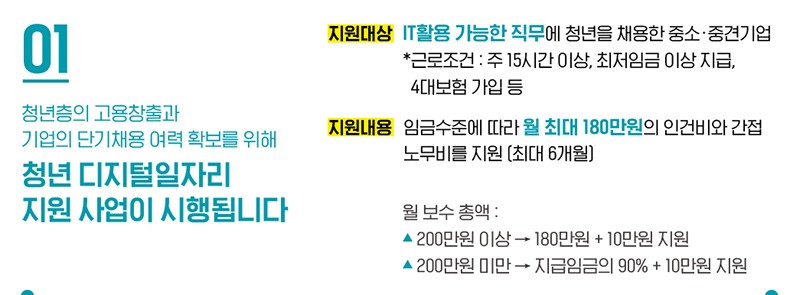 올해 청년 디지털 일자리 사업은 최대 6만 명까지 정보기술(IT) 활용 직무에 청년을 채용한 기업에 월 최대 180만원의 인건비와 간접노무비 10만원을 지원한다.