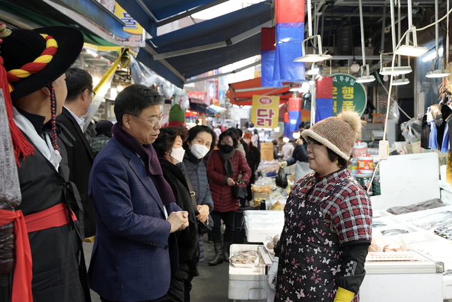 이번 진통시장 방문은 설 명절을 맞아 전통시장 물가동향을 파악하고 침체된 소비심리와 극심한 유통환경 변화 등으로 어려움을 겪는 상인들의 애로사항을 파악하기 위해 마련됐다 .