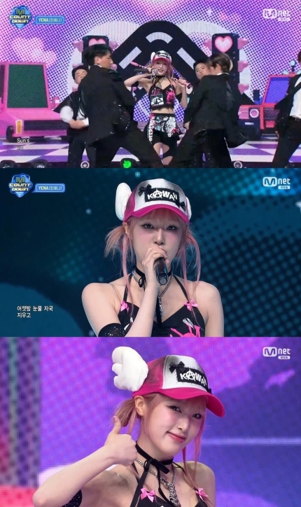최예나는 핑크 컬러의 헤어와 날개가 달린 모자 스타일링으로 애니메이션 캐릭터 같은 독보적인 매력을 보였다. 최예나는 비주얼부터 보컬, 퍼포먼스까지 한층 더 성숙해진 모습을 보여주며 완성도 높은 무대를 꾸몄다.