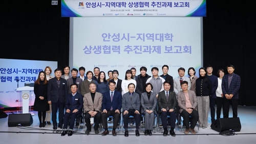 이날 보고회는 안성시장을 비롯해 한경국립대 총장, 중앙대 산학협력단 부단장, 동아방송예술대 총장, 두원공과대 총장, 한국폴리텍대 반도체융합캠퍼스 학장 등 40여명이 참석한 가운데 1부는 2023년 안성시-지역대학 상생협력 추진과제 실적, 2024년 안성시-지역대학 상생협력 신규 및 지속사업 추진과제를 보고하는 시간을 갖고, 2부는 동아방송예술대학생들까지 함께 참여해 대학상생협력 및 관내 대학생이 안성시에 정주할 수 있는 방안에 대해 논의하는 소통의 자리를 마련했다.