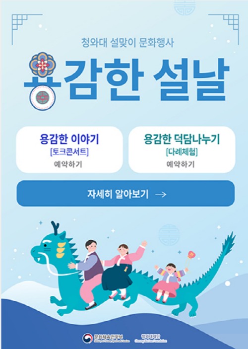 문화체육관광부는 청와대재단과 함께 9~11일 청와대 일원에서 ‘청와대, 용감한 설날’ 문화행사를 진행한다.