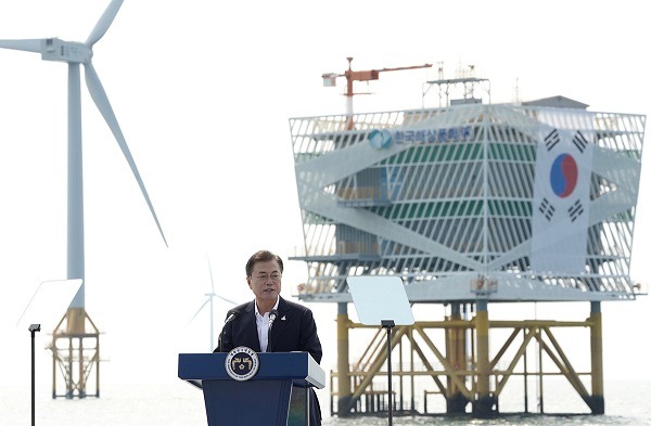 이날 문 대통령은 “현재 124MW 규모인 해상풍력발전 용량을 100배 늘려 2030년 12GW까지 확대할 것”이라며 해상풍력을 중심으로 에너지전환에 속도를 내겠다는 의지를 밝혔다.