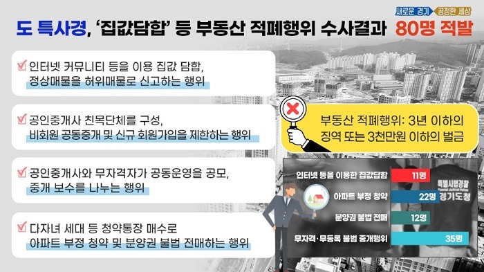 집값담합, 부정청약, 불법전매, 무등록 중개행위 등 불법행위자 80명 적발, 54명 검찰송치, 26명 형사입건