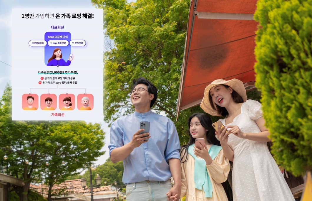 가족로밍은 baro 요금제에 가입한 가족대표 1명이 3,000원만 추가해 가입하면 모든 가족(대표 포함 최대 5명)이 로밍 데이터를 함께 사용할 수 있는 서비스다.