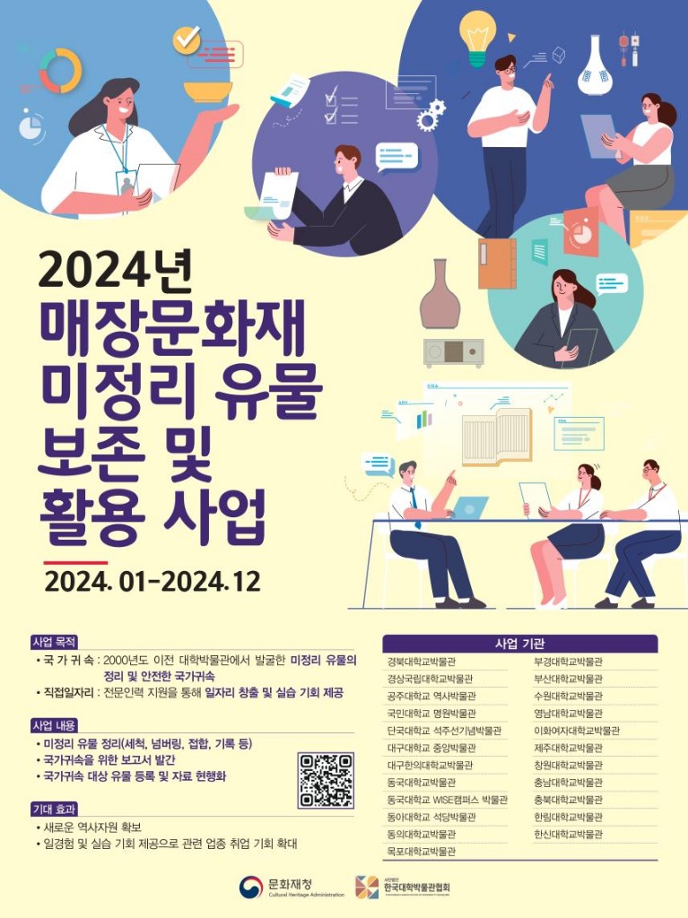 이 사업은 2000년대 이전 대학박물관이 실시한 매장유산 발굴조사 후 오랫동안 수장고에 보관만 된 채 공개되지 못했던 유물들을 정리하고 국가귀속 대상 유물로 등록될 수 있도록 전문인력 채용을 지원하는 사업이다. 2020년에 처음 시작되어 지난해까지 4년간 총 747명을 채용하였으며, 미정리 유물 33만 6천 점을 정리하여, 6만 4천 점을 국가귀속 유물로 선별, 2만 7천 점을 국가로 귀속하는 성과를 거뒀다.