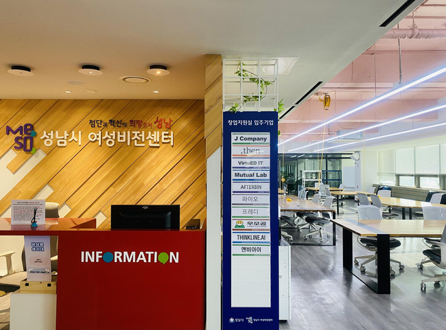 창업지원실은 여성 창업자들의 안정적인 창업과 활성화를 지원하는 개방형 사무공간이다.