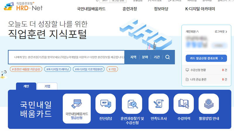 내일배움카드 제도는 실업자, 재직자가 직업능력개발 훈련을 받을 수 있도록 훈련비를 지원하는 것으로, 훈련과정은 승인받은 학원 등 기관에서 실시하고 재직자 등은 발급받은 카드로 결제한다.