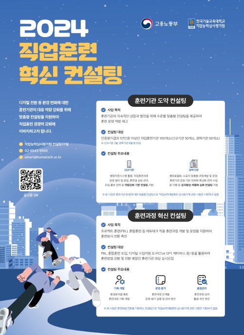 고용노동부와 직업능력심사평가원은 2월 16일(금), 훈련기관이 디지털 전환 등 다양한 환경변화에 대응하면서 높은 품질의 훈련을 제공할 수 있도록 ‘직업훈련 혁신 컨설팅’을 추진한다고 밝혔다.