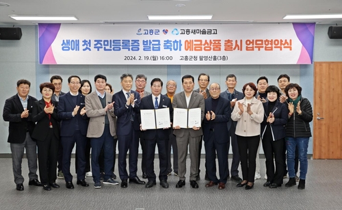 고흥군은 지난 19일 군청 팔영산홀에서 고흥새마을금고(이사장 유병곤)와 생애 첫 주민등록증 발급 축하를 응원하기 위해 적금 상품 출시 협약(MOU)을 체결했다.