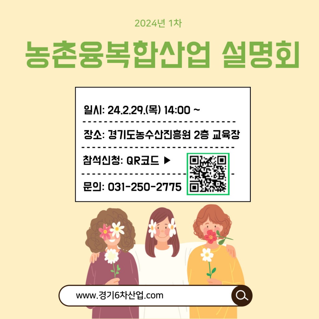 경기농촌융복합산업지원센터가 오는 29일 ‘2024년 1차 경기농촌융복합산업 설명회’를 개최한다.