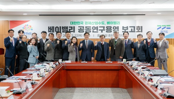경기도와 충청남도는 22일 충남도청에서 오병권 경기도 행정1부지사와 전형식 충청남도 정무부지사, 실·과장, 경기‧충남연구원 등 30여 명이 참석한 가운데 ‘베이밸리 공동연구용역 보고회’를 개최했다.