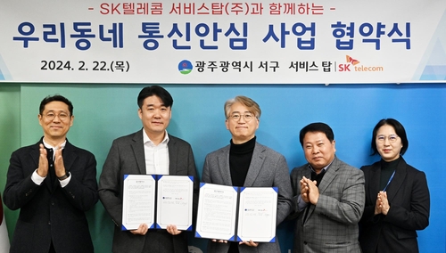 광주광역시 서구와 SK텔레콤 서비스탑(주)이 22일 통신피해 예방 및 디지털 정보격차 완화를 위한 업무 협약을 체결했다.