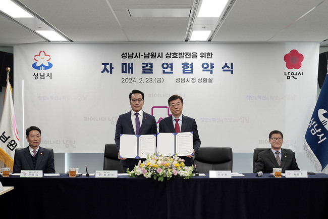 성남시는 2 월 23 일 전북특별자치도 남원시와 상호 발전을 위한 자매결연 협약을 체결했다 .