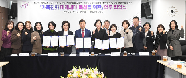 성남시는 2 월 23 일 오후 3 시 10 분 시청 4 층 상황실에서 4 개 교육 관련 기관 · 단체와 ‘ 가족 친화 미래세대 육성을 위한 업무협약 ’ 을 했다 .