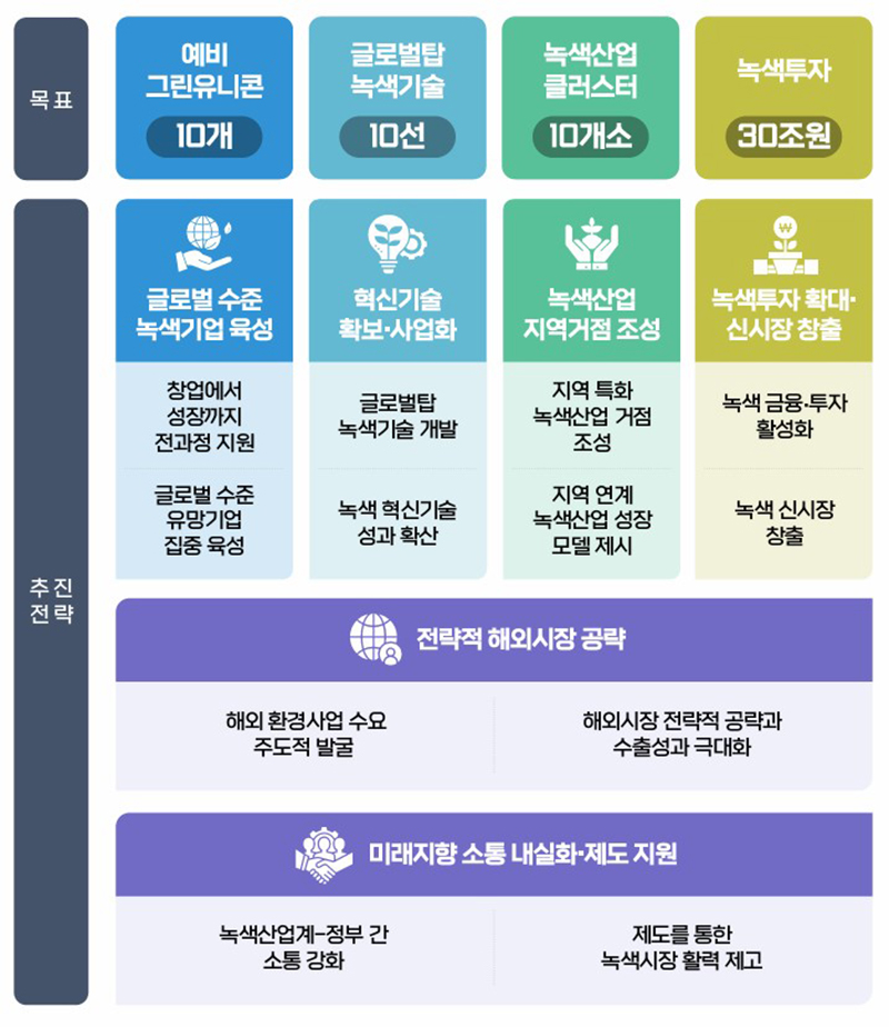 이번 방안은 녹색산업 내수 확대가 해외 진출로 이어지는 선순환구조 마련에 역점을 두었다.
