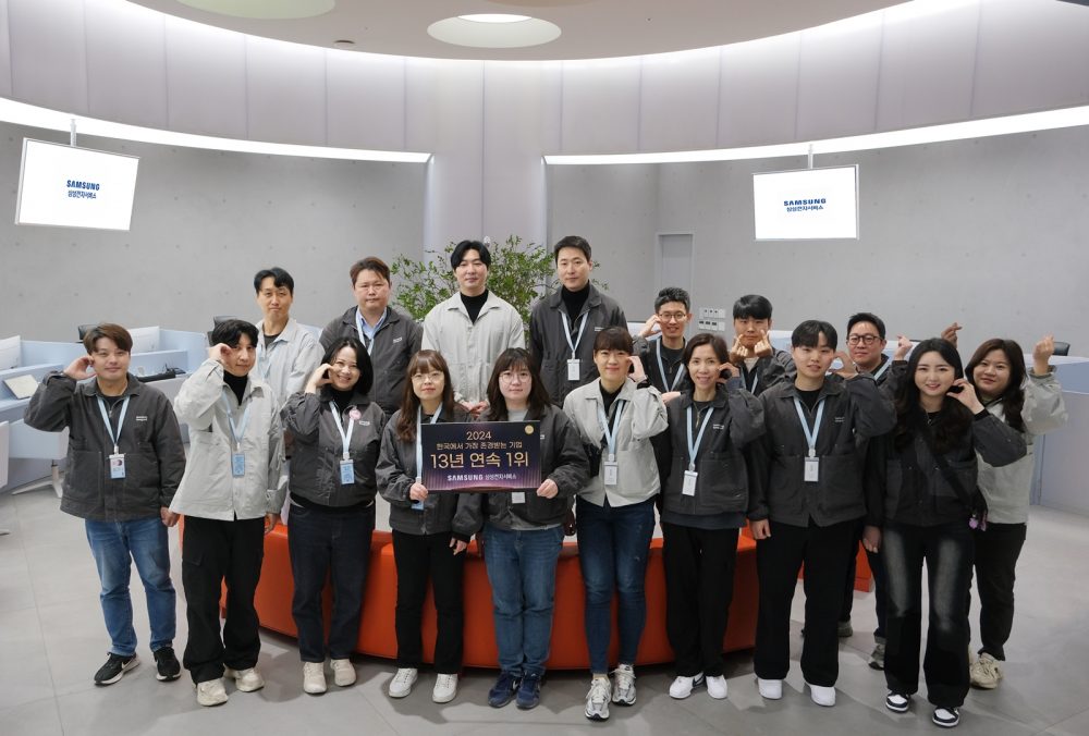 삼성전자서비스가 한국능률협회컨설팅이 주관하는 ‘2024 한국에서 가장 존경받는 기업 ’ 조사에서 올해도 ‘ 서비스센터 부문 ’ 1 위로 선정됐다 . ‘ 서비스센터 부문 ’ 조사가 도입된 2012 년 이후 단 한 번의 예외없이 13 년 연속 1 위에 오르며 업계 최고의 서비스 우수기업임을 증명했다 .