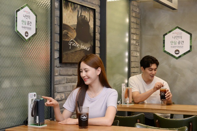 LG전자가 커피 프랜차이즈 엔제리너스와 함께 휴대용 공기청정기인 LG 퓨리케어 미니를 활용해 '나만의 안심 공간'을 마련했다.