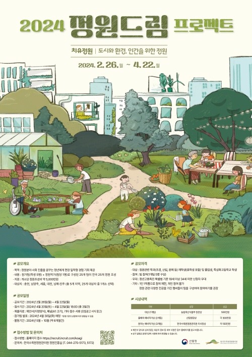 산림청이 주관하고 한국수목원정원관리원에서 주최하는 ‘정원드림 프로젝트’는 조경·산림·원예 등 정원분야를 전공한 대학생(졸업생 포함)과 산림특성화고등학교 학생들의 취·창업 역량을 강화하기 위해 마련됐다.