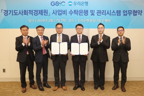 경기도사회적경제원은 우리은행과 ‘사업비 수탁은행 및 관리시스템 업무 협약’을 27일 체결했다.