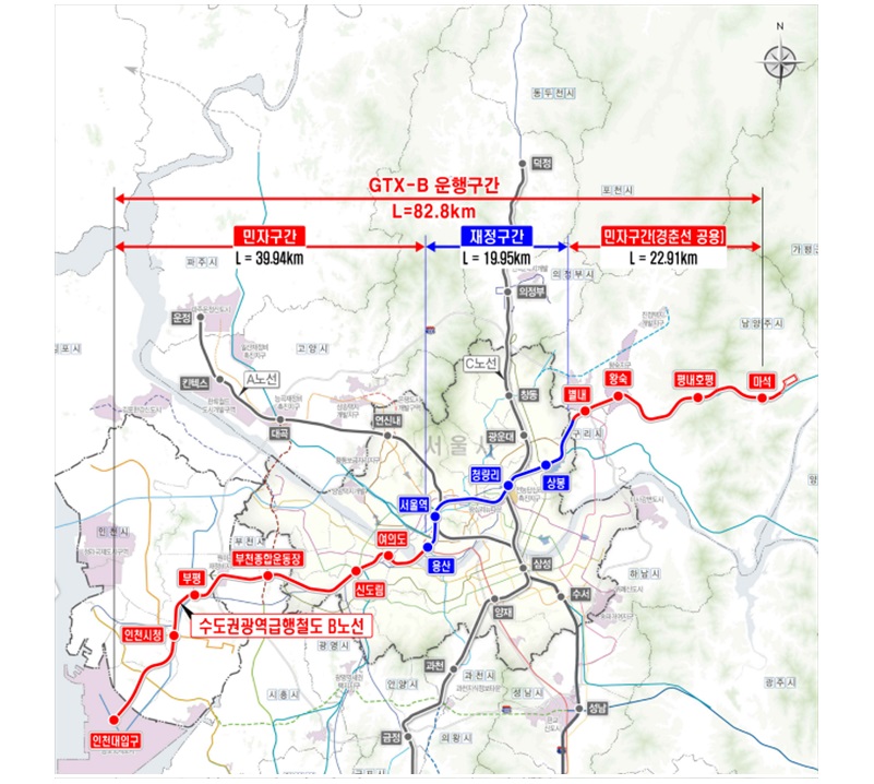 수도권 광역급행철도 B노선 사업을 올해 상반기 착수해 2030년에 개통하기로 했다.