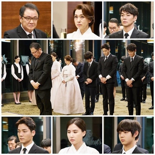 이와 관련 정원중-문희경-이규한-김진우-공현주-전진서가 으리으리한 홀에 집결해 제사를 올리고 있는 ‘일촉즉발 추모식’이 포착됐다. 극 중 모철희(정원중)가 검은 양복을 입은 무리들 중앙에 나서서 예를 표하는 장면. 뒤에 있던 하영서(문희경)-모완수(이규한)-모완준(김진우)-백수진(공현주)-모서진(전진서)이 모철희의 움직임에 따라 절을 하는 가운데, 묵념을 마치고 일어서는 순간 6인의 표정이 확 달라지면서 각자 품고 있던 은근한 속내를 내비친다.