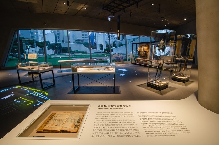 조선시대 편찬된 다양한 병서들과 환도, 기창, 조총, 활과 같은 무기류, AR체험을 통해 당시 조선시대 군사훈련의 모습을 엿볼 수 있다.
