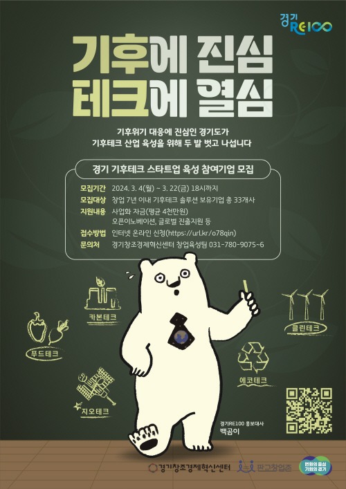 기후테크란 온실가스 감축 기술, 기후변화적응에 기여하는 기술을 말한다. 기후테크 스타트업 육성 사업은 기후 위기 대응과 지속 가능한 경제 발전에 기여하기 위해 2026년까지 기후테크 분야 우수 스타트업 100개 사를 육성하는 것을 목표로 한다. 도는 올해 '기후테크 스타트업 육성 사업'을 통해 총 33개 기업을 선발할 예정이다.