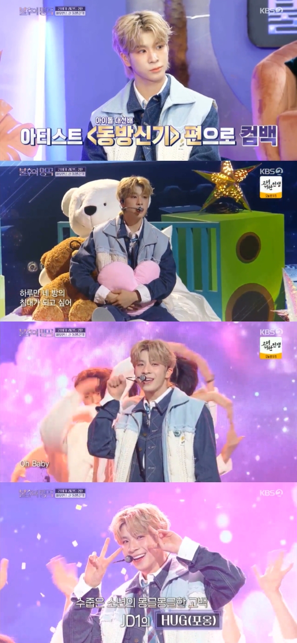 JD1은 “오늘 ‘HUG(포옹)’라는 곡을 준비했다. 저도 데뷔한지 얼마 되지 않아서, 선배님들의 저(데뷔곡) 기운을 받아서 롱런하고 싶은 마음에 이 곡을 준비하게 됐다”라고 밝혔다.