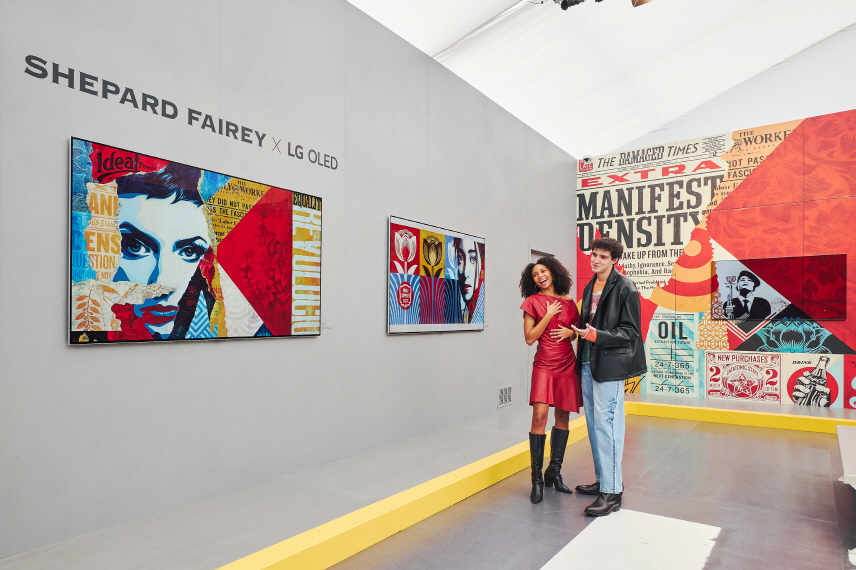 LG전자는 지난달 29일(현지시간)부터 美 LA 산타모니카 공항에서 열린 이번 전시에서 세계적인 그래피티(Graffiti) 아티스트이자 사회 운동가인 셰퍼드 페어리(Shepard Fairey)와 협업해 150제곱미터(m2) 규모의 ‘LG 올레드 라운지(OLED Lounge)’를 조성했다.