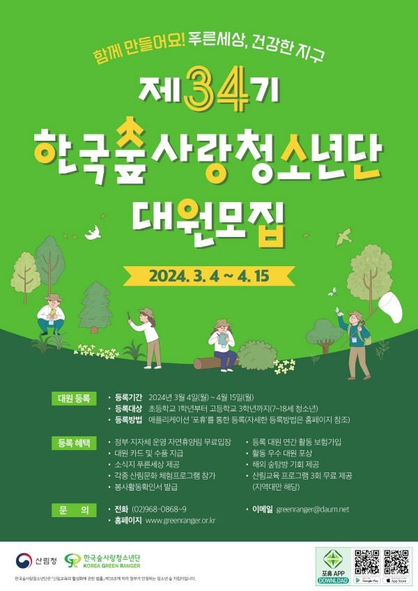 참가신청은 한국숲사랑청소년단에서 운영하는 모바일 애플리케이션 ‘포휴(Forest Human)’ 앱을 통해서만 가능하며 자세한 사항은 한국숲사랑청소년단 누리집(www.greenranger.or.kr)에서 확인할 수 있다.