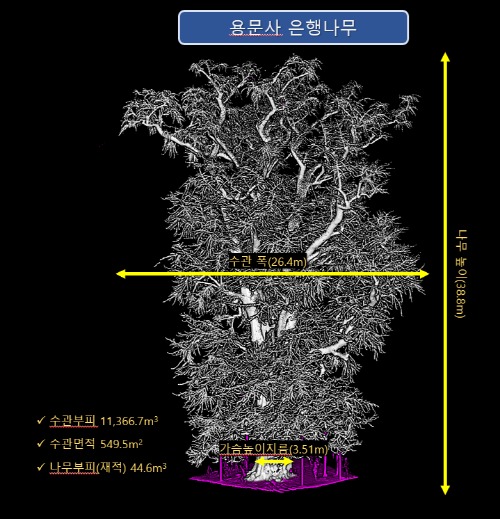 이에, 국립산림과학원은 나무의 높이, 둘레, 부피, 무게, 탄소 저장량 등 나무의 정보를 디지털 정보로 전환하는 최신 라이다 기술을 이용하여 용문사 은행나무의 실물과 똑같은 디지털 쌍둥이 나무를 구현하였다.