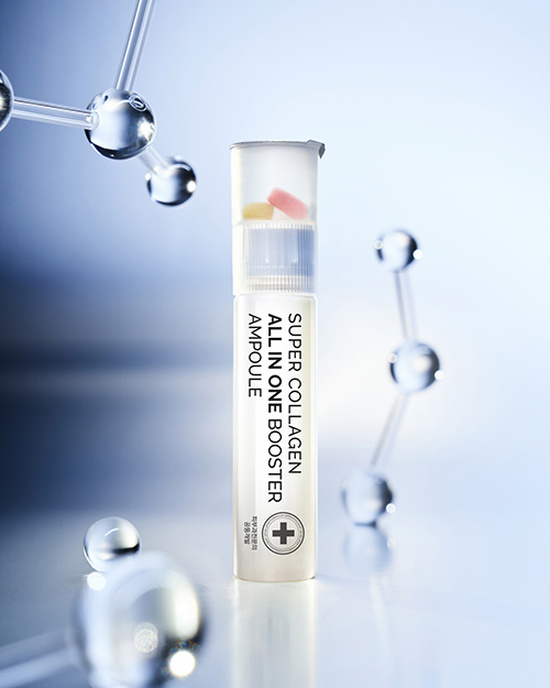 슈퍼콜라겐 올인원 부스터는 ‘슈퍼콜라겐 올인원 부스터 앰플’과 ‘올인원 부스터 정제’가 하나로 합쳐진 이중 제형 형태로 콜라겐뿐 아니라 엘라스틴, 히알루론산, 세라마이드, 글루타치온 등 총 10가지 성분을 담은 새로운 개념의 제품이다.