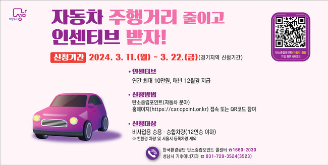 성남시는 오는 3 월 11 일부터 22 일까지 ‘ 자동차 탄소중립 포인트제 ’ 참여자를 모집한다 .