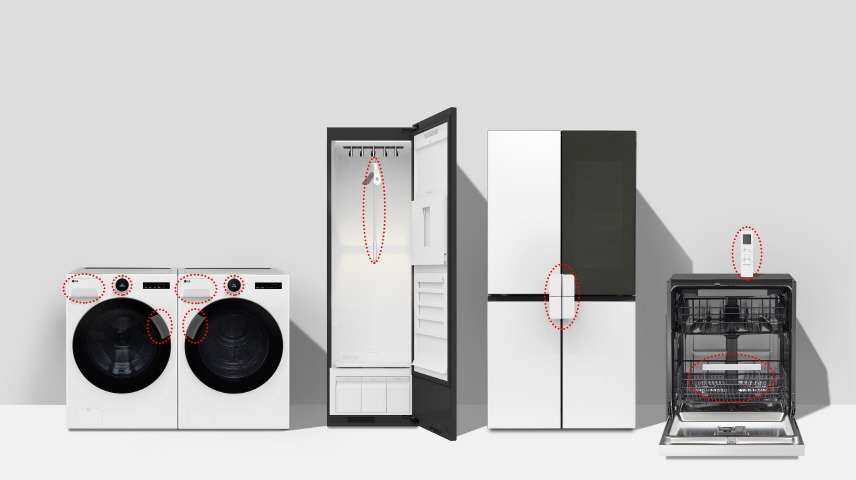 한편, LG전자는 폐기물의 자원화와 순환 경제를 추구하기 위해 고온 노출되는 식기세척기 이지핸들과 실리콘 재질 리모컨 커버를 제외한 이지핸들과 이지볼, 이지행어에 재생 플라스틱을 활용했다.