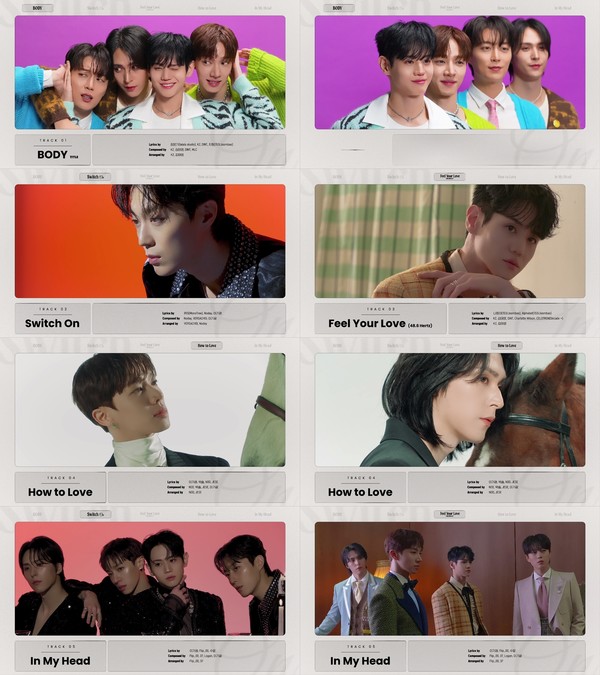 이를 포함해 이기광이 작사, 작곡에 참여한 'Switch On'(스위치 온), 'How to Love'(하우 투 러브), 'In My Head'(인 마이 헤드)와 또 다른 수록곡 'Feel Your Love (48.6Hertz)'(필 유어 러브 (48.6헤르츠))까지 총 5곡의 음원 일부가 음악적인 완성도를 예감하게 한다.