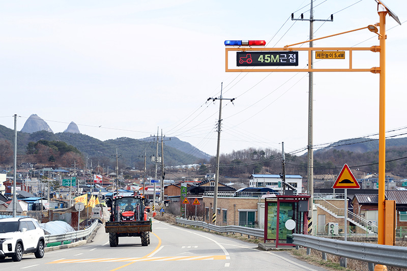 앞으로 트랙터, 경운기 등의 농업기계 주행 정보도 도로에 설치된 LED 주행 안내표지판에 문자와 이미지로 표시된다.