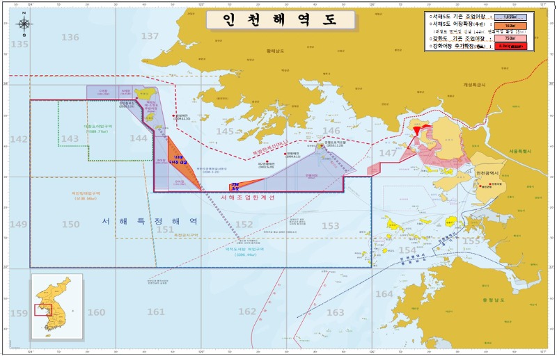 인천광역시는 3월 6일 해양수산부가 서해5도 어장이 현행 1,855㎢에서 169㎢ 늘어난 2,024㎢로 대폭 확장되는 내용이 담긴 ‘어선안전조업법 시행규칙’을 입법예고 했다고 밝혔다.