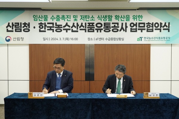 이번 업무협약은 임산물 수출기업에 대한 맞춤형 지원을 강화하고, 한국농수산식품유통공사 22개 해외 지사를 활용한 해외시장 개척 등 수출확대 기반을 강화하기 위해 마련됐다.