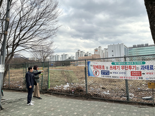 또한 쓰레기 무단투기 민원이 빈번히 발생하고 있는 구미동 이전 법원부지 ( 구미동 190 번지 ) 현장을 방문 · 점검하고 관련 부서에 쓰레기 무단투기 방지 현수막 추가 게첨을 요청했다 .