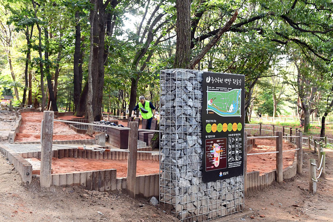 성남시 분당구 수내동 중앙공원 맨발 황톳길 세족장에 올겨울부터 온수 공급이 추진된다.