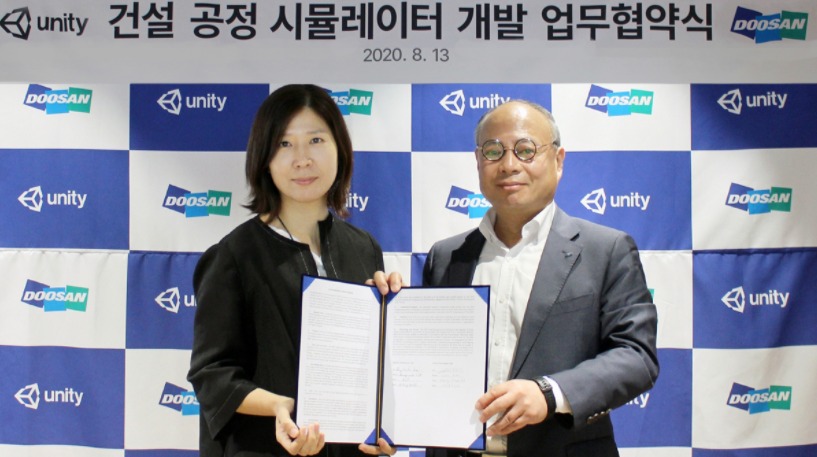두산인프라코어는 13일, 유니티 테크놀로지스 코리아와 건설 공정 시뮬레이터 개발 상호협력을 위한 양해각서(MOU)를 체결했다고 밝혔다. 국내 건설기계 업계에서 게임엔진 개발사와의 협력 프로젝트는 이번이 처음이며, 글로벌 건설기계 업계에서도 사례가 드물다.