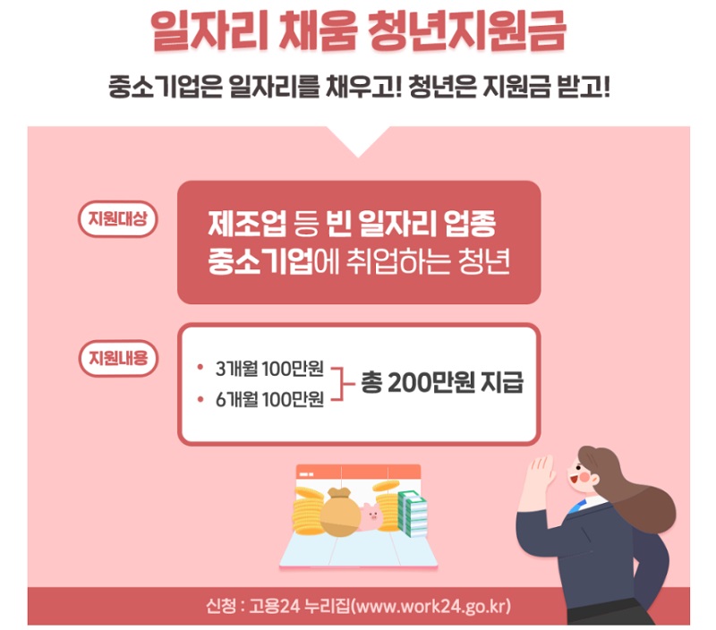 이 사업은 일자리 미스매치를 해소하기 위해 빈 일자리 업종의 중소기업에 취업한 청년들에게 최대 200만원을 지원하는 제도다.