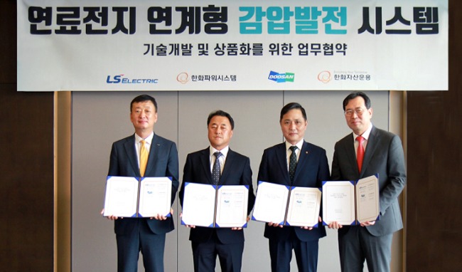 두산퓨얼셀은 LS일렉트릭, 한화파워시스템, 한화자산운용과 ‘연료전지 연계형 감압발전 시스템 기술개발 및 상품화를 위한 업무협약’을 체결했다고 13일 밝혔다.